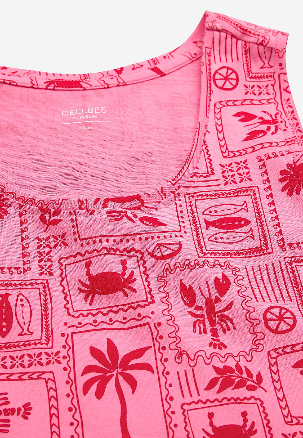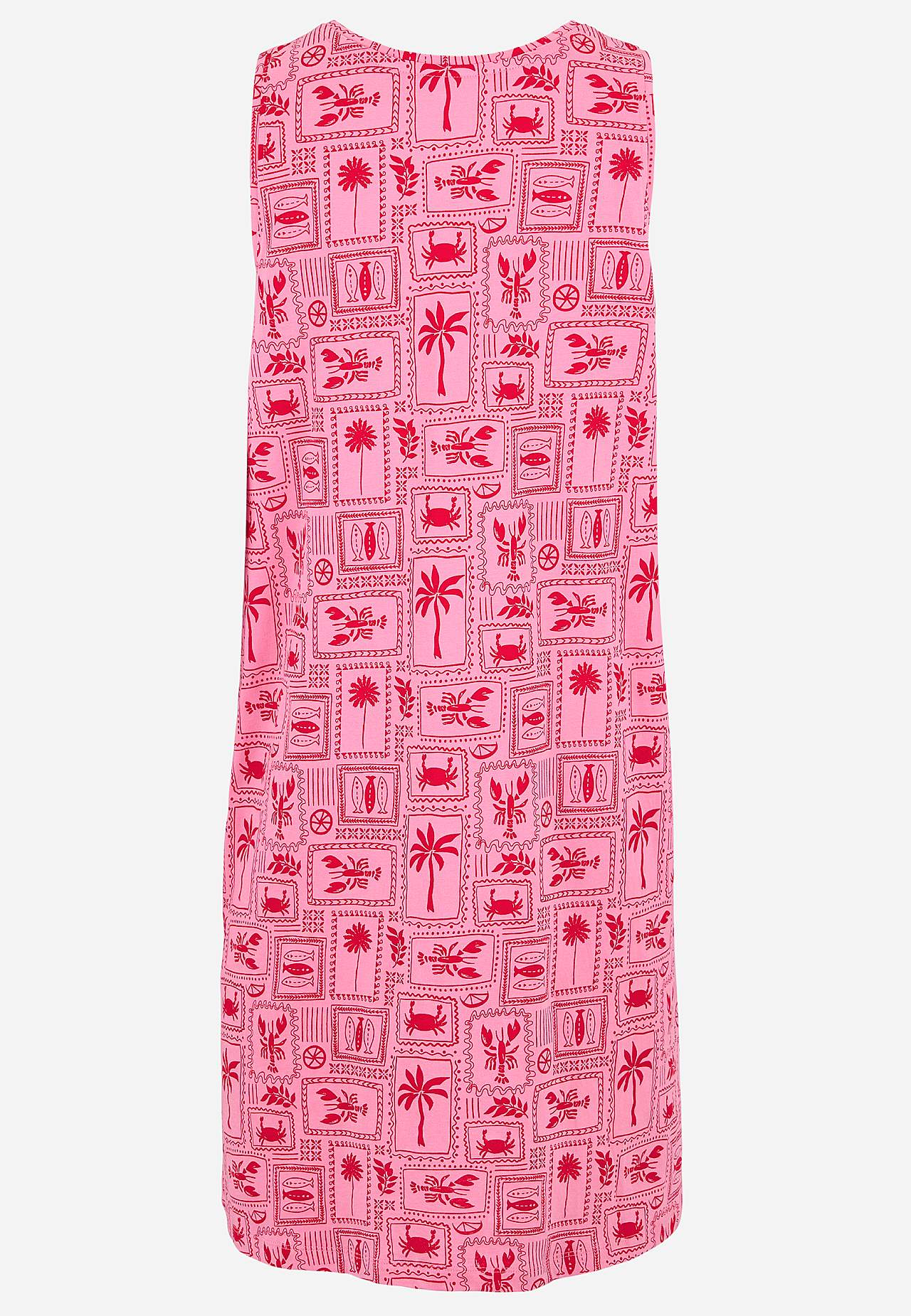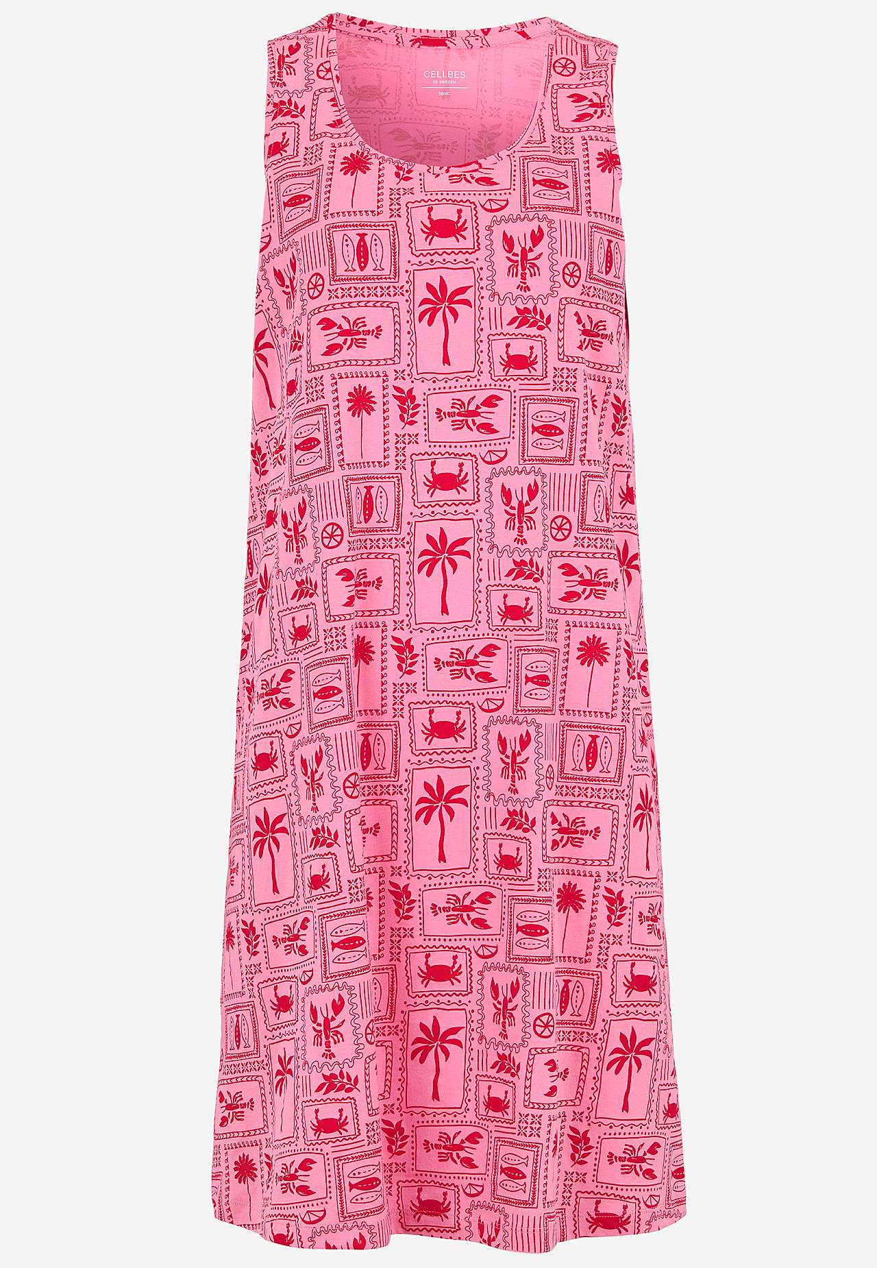 Kort, mønstret natkjole i blød økologisk bomuld. Uformel pasform. Rund hals. Ærmeløs model. Lige søm med slids i siderne. Længden følger størrelsen, ca. 94-101 cm fra skulderen bagpå.