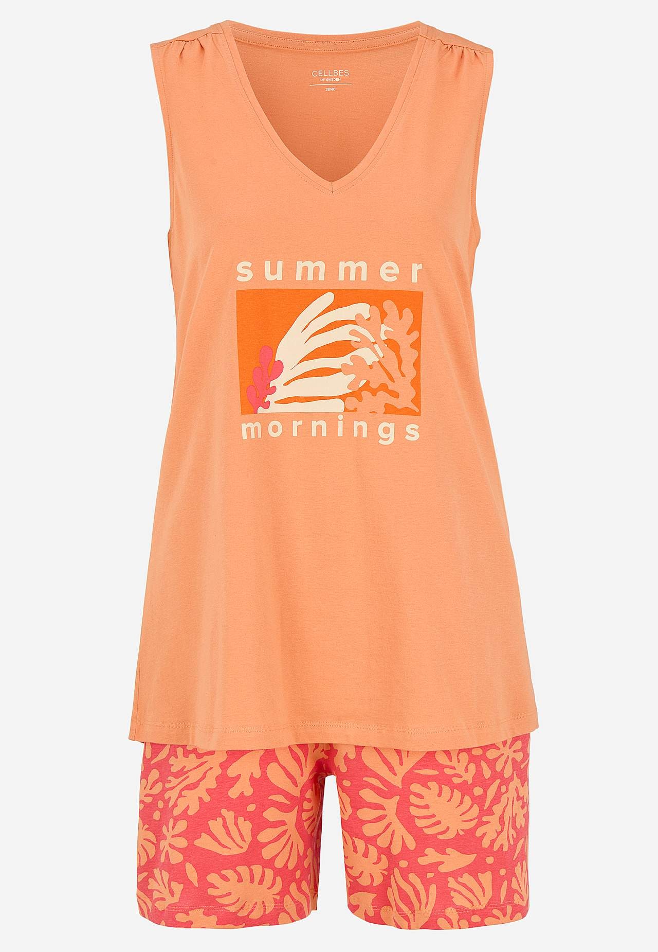 Sæt med ærmeløs top og brede shorts. Uformel pasform. Ryglængden følger størrelsen, ca. 69-81 cm. Indvendig benlængde følger størrelsen, ca. 21-23 cm.