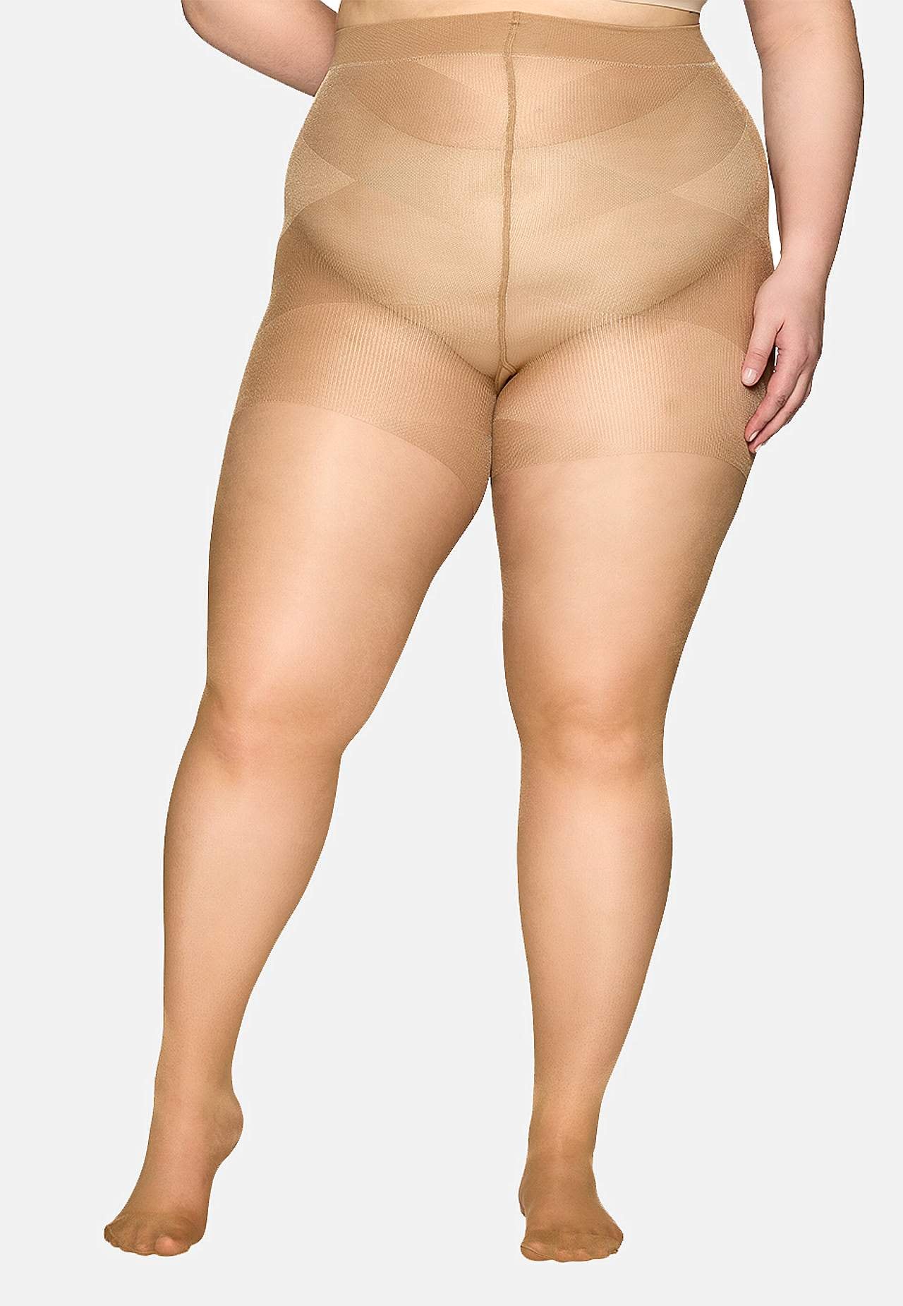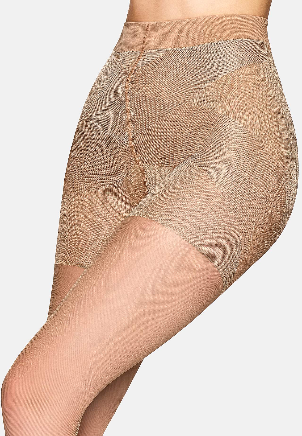 Designet til en mere kurvet kropsform. Forstærket omkring talje, bagdel og lår. Komfortabel høj talje. Bomuldsforet skridt. Semimat afslutning. Forstærket tå og hæl. 40 denier.